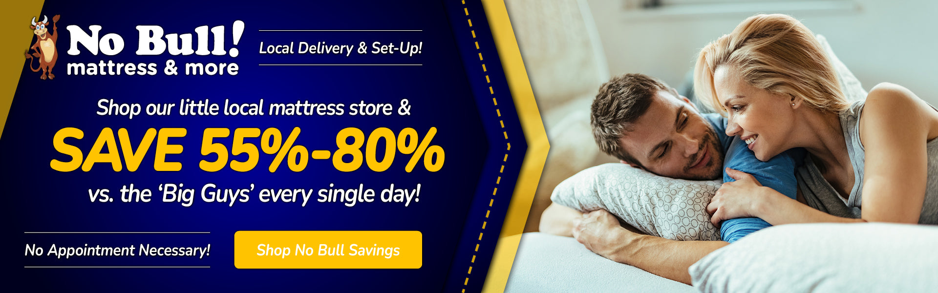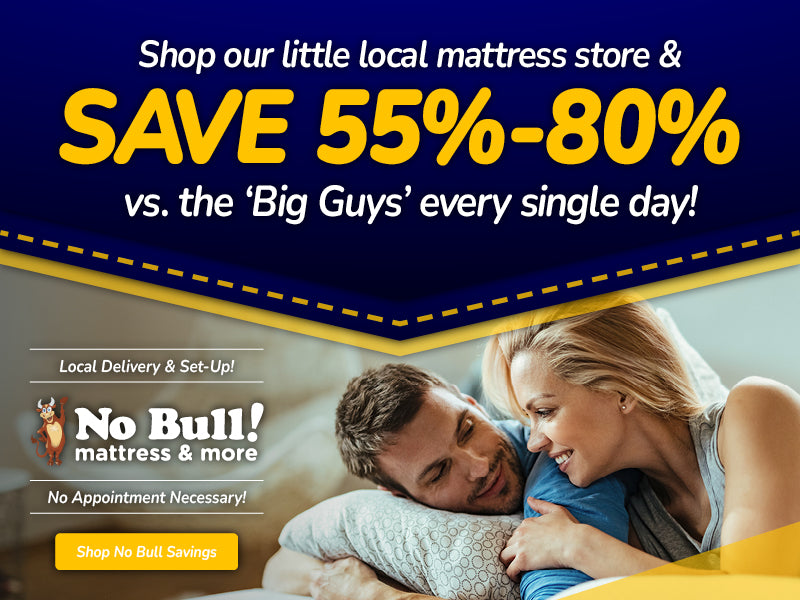 Our mattresses are an incredible 55% to 80% lower than the ”BIG GUYS” every day. Mattress stores like Mattress Firm and Sleep Number spent over $750 MILLION dollars last year on advertising alone! YOU pay for that! We spend virtually ZERO dollars on advertising and pass the savings along to you.