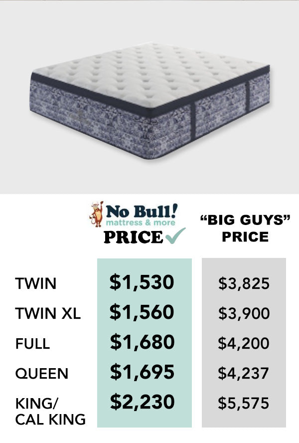 Ultra Plush Eurotop mattress offers the ultimate in comfort and support. Featuring tri-tech gel-infused memory foam, it also has soft, natural fibers that wick away moisture to keep you cool. The tri-zoned innerspring system and premium foams provide superior conformability and pressure reduction. The top edge features an enhanced perimeter coil for added support, zoned innerspring coils wrapped individually for personalized support, and are divided into two sides for increased motion separation.